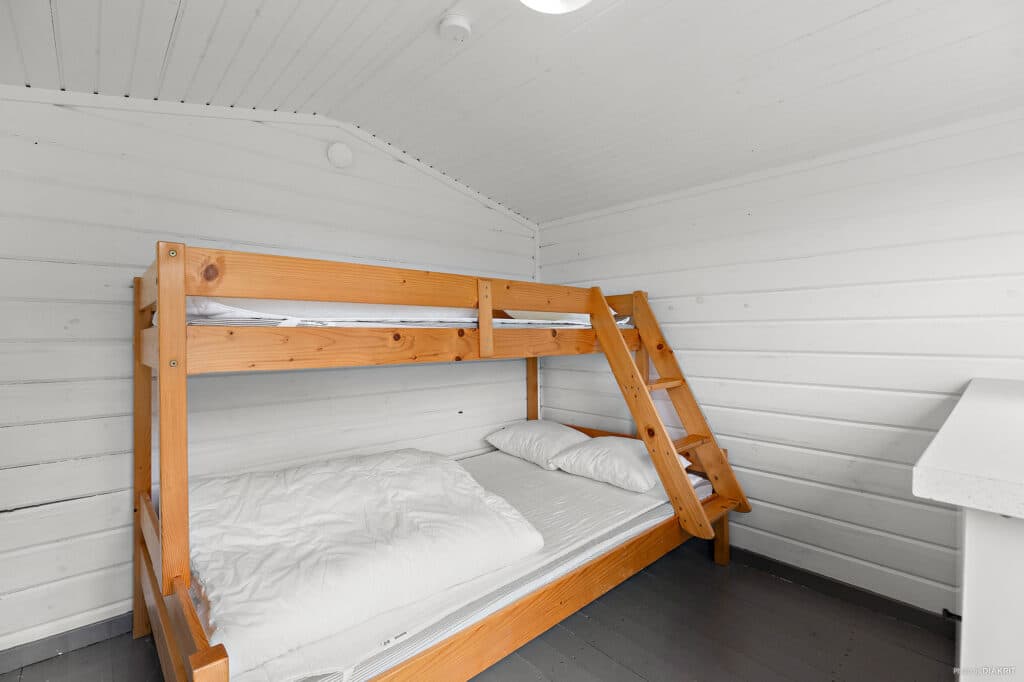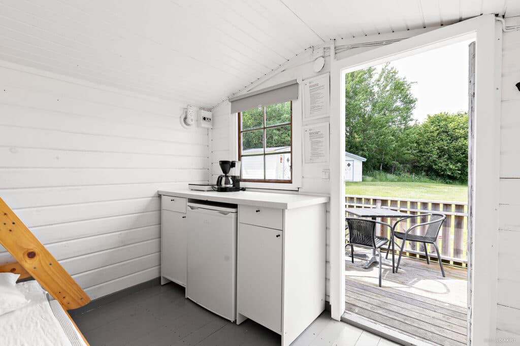 Cabin 3 beds Nr. 19-26 In the cabin Dalatorp there is room for a total of three people in a family bunk bed where the undersleep is wider. In the cabin there is a simpler kitchenette with coffee maker and refrigerator. There is also a smaller dining table with two chairs where you can eat well or why not challenge your travel companion in some fun game. If you want access to facilities such as a shower and toilet as well as a kitchen, you will find the service house in the camping area, which you of course have access to during your trip. This accommodation is suitable for you who are looking for a simpler accommodation for a cheaper price.