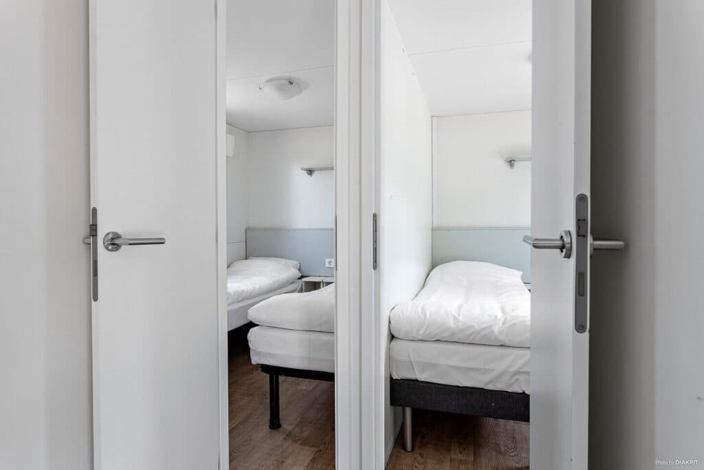 Our mobile home, Ekerum Plus is good option for those who prefer more space during their holiday. This has three bedrooms and six beds. This mobile home also has two bathrooms, one with a shower and toilet and the other with just a extra toilet. This also has a complete kitchen with all the equipment you need, such as a stove, oven, microwave, refrigerator, freezer, coffee machine and a dining table where you can sit and enjoy a good meal. For extra comfort, there is also a TV and sofa where you can relax in the evening.