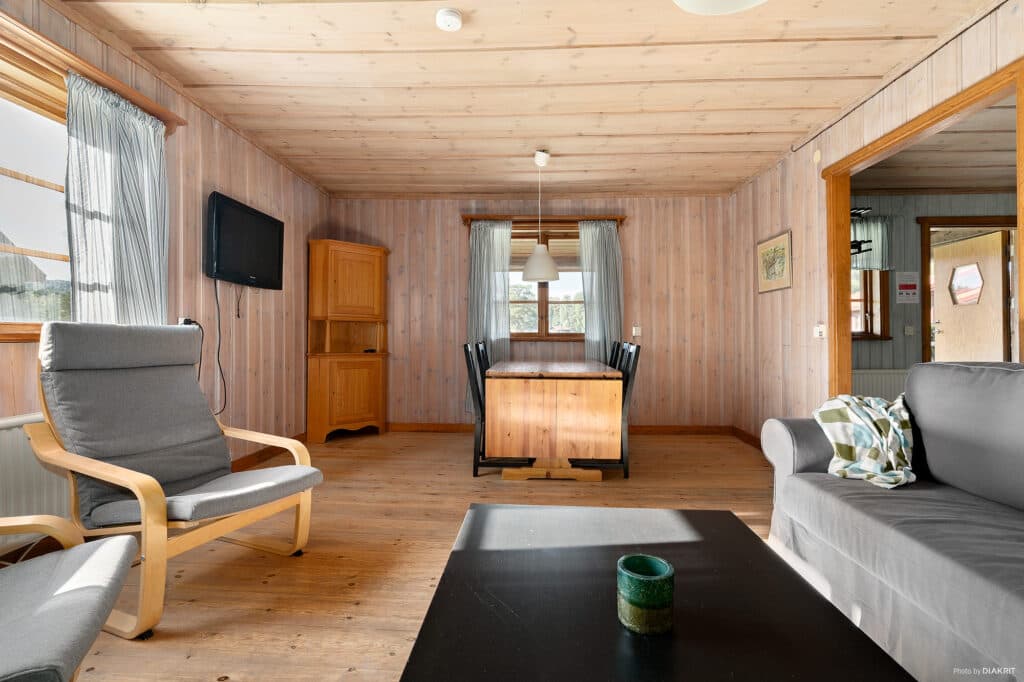 Massarbäckstuga sleeps a total of people. Cottage 59 is 69 m2 in size and includes one separate bedroom, while cottage 64 is 62 m2 in size and includes two bedrooms. The cottages feature the same number of beds, but differ in floor area and number of rooms. Cottage 64 features one bunk bed in each bedroom. Cottage 59 includes one bedroom with two single beds and a bunk bed in the common room. Both cottages include a sofa bed for two. Duvets and pillows are supplied for all beds in the cabin. There is a bathroom with a toilet and a shower, as well as a kitchen with utensils, an oven, a microwave oven, a stove, a refrigerator, a freezer, and a coffee maker. There is an open fireplace in both cottages. The cottages feature a dining area and a TV. Balcony with a view of the campsite, as well as an engine heater.