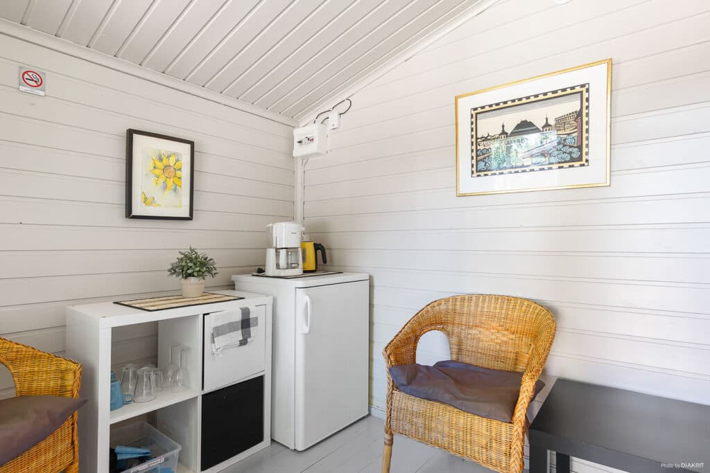 If you are looking for a smaller and simpler accommodation, this is the right choice for you. In our Svanhytter you live on 7 sqm and there is room for two beds. Refrigerator and coffee maker available, no kitchenette or running water. If you want access to thoose facilities as well as a shower and toilet, there is in the service house which is located near the Swan cabins. A cozy and affordable accommodation option for you who do not need a large area. Here you can also take your four-legged friend on the trip.