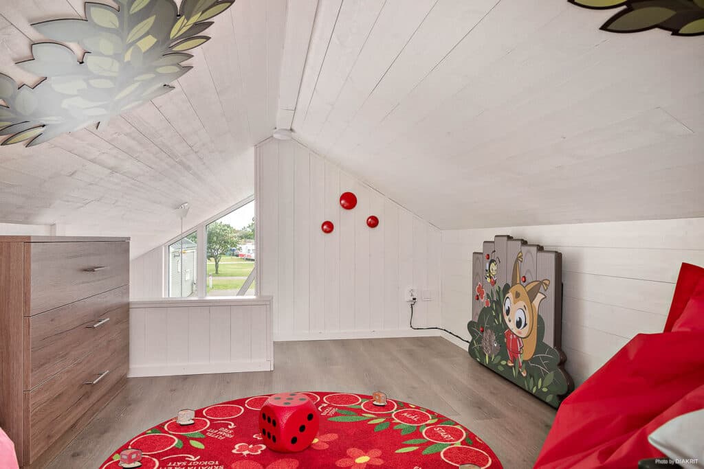 Welcome to Yessi Lodges. These are a lovely, comfortable accommodations with everything needed for families with kids. Yessi, the camp mascot, lives in the woods next to the campsite but has spent a night at the Lodges and left messages in all the rooms. Up in the cosy loft bedroom, the kids can explore part of Yessi’s world with games and fun surprises.