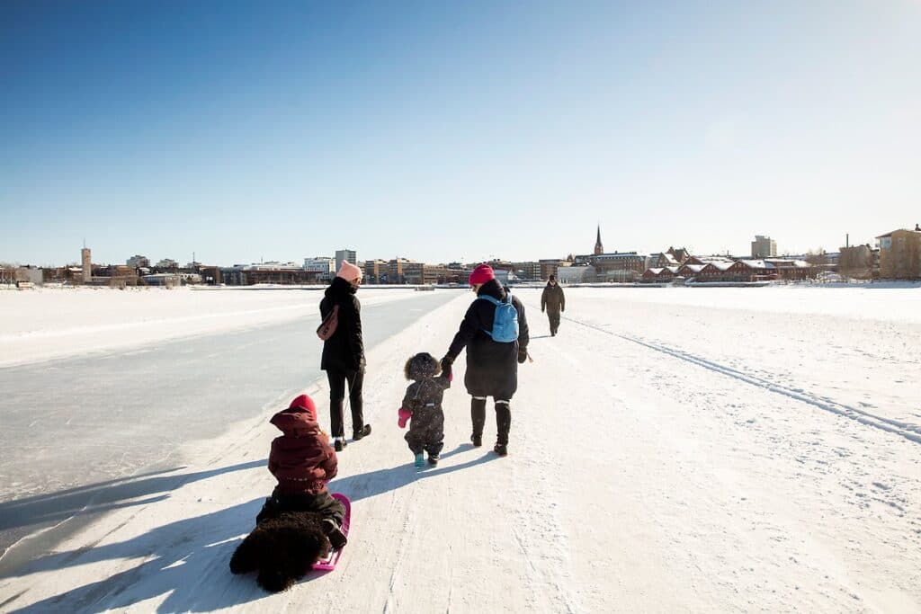 The ice rink is located in the heart of the city and offers a unique opportunity to enjoy winter sports and at the same time take part in the vibrant city pulse. As a visitor, you have the opportunity to rent ice hockey equipment and participate in games, or just skate and enjoy the beautiful surroundings. You can get around with a pram, wheelchair, bicycle, skates, kicks or take a lovely walk. The ice rink stretches all the way from the northern harbor to the southern harbor and is just over 10 kilometers long. However, this varies each winter depending on how the temperature has been. Welcome to experience one of Luleå’s most well-known tourist destinations, with thousands of visitors every year.