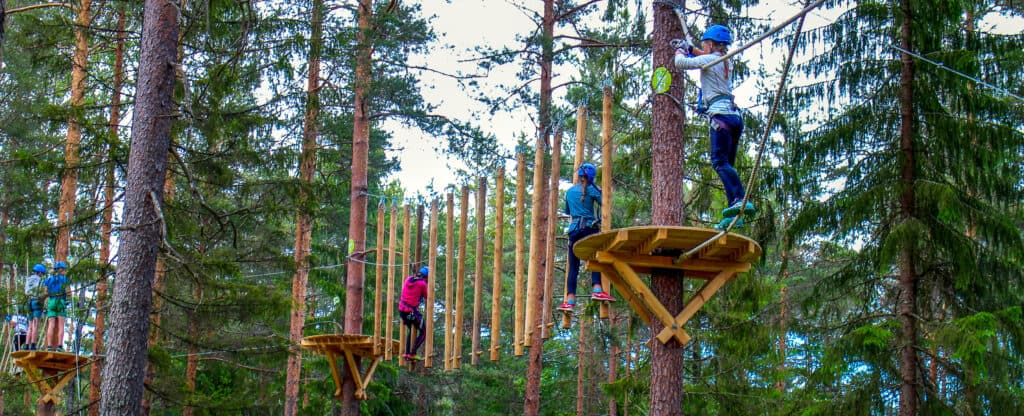 Fun for the Whole FamilyAt Høyt & Lavt Climbing Park, the whole family can enjoy exciting outdoor challenges in a safe environment – suitable for all ages and skill levels. You’ll receive a safety briefing before starting your adventure. You can also check ticket prices and availability online, or purchase your tickets directly at the reception at First Camp Bø – Telemark.