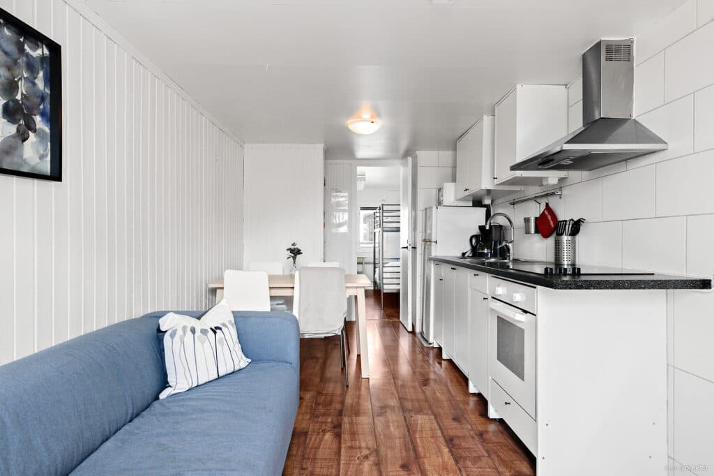 The Sannässtugan is a slightly larger cottage of 25 sqm with space for four beds, divided into two bunk beds in one bedroom. In the living room, there’s a kitchenette with a fridge, coffee maker, and stove, as well as a dining table with four chairs where you can enjoy delicious meals during your trip. For access to a shower and toilet, you’ll find these in the service building on-site. Only cottage no. 3 has a toilet inside. The cottage is close to the playground and the beach.