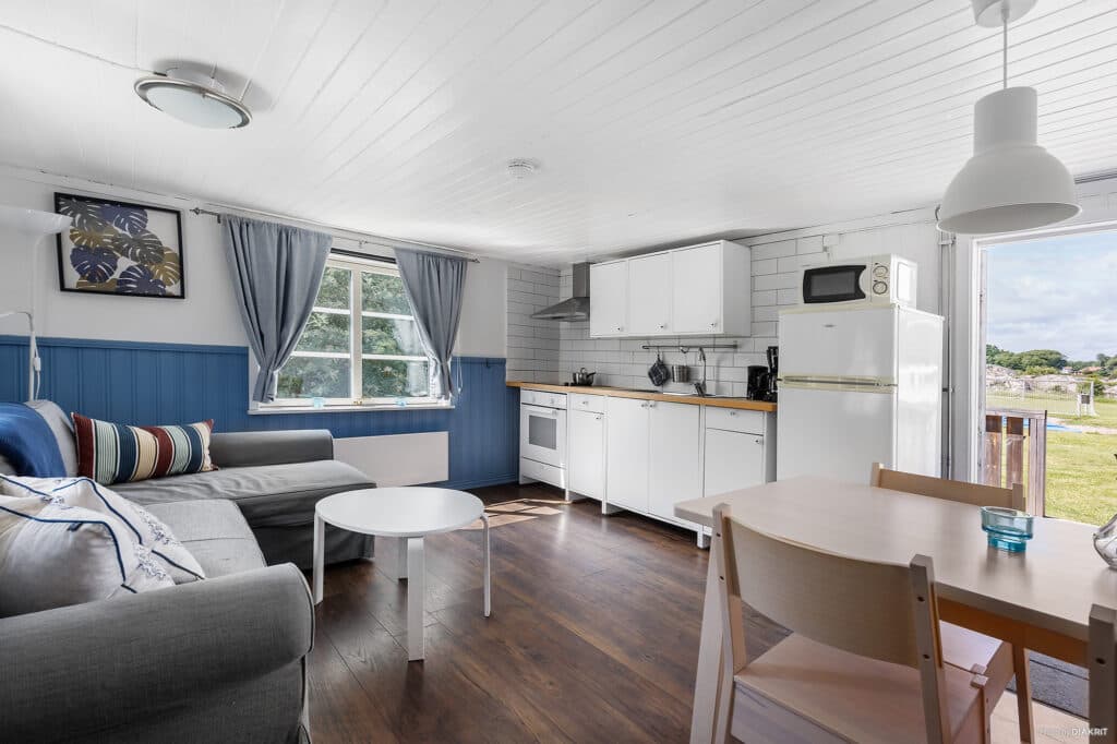 When you stay in this cabin, you’re close to a playground – perfect for families with children! You’re also near the beach and the beautiful coastal views. The cottage is next to the Strandbyn Plus cottage, and pets are allowed if desired. The cottage is located by the bistro.