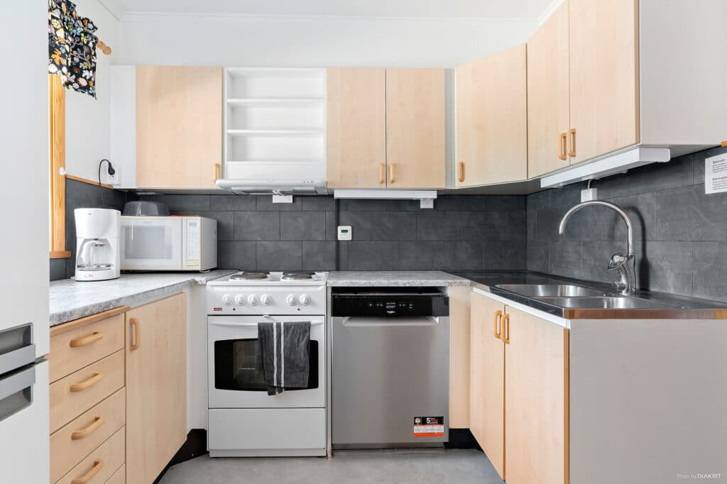 Enålundstuga is 82 m2 in size and sleeps eight people in total. There are three bedrooms and a kitchen area/common room. In the common room, there is a sofa, a dining area, an open fireplace, a DVD-player and a TV. The cottage has three bedrooms. One has a bunk bed, one has two bunk beds and the one has a double bed. Duvets and pillows are supplied for all beds in the cabin. There’s a kitchen with a dining area, stove, oven, dishwasher, ventilation, microwave oven, refrigerator, freezer, and coffee maker. Bathroom with toilet and shower. The cottage is in the access area near the reception. Engine heaters are available for the cottage.