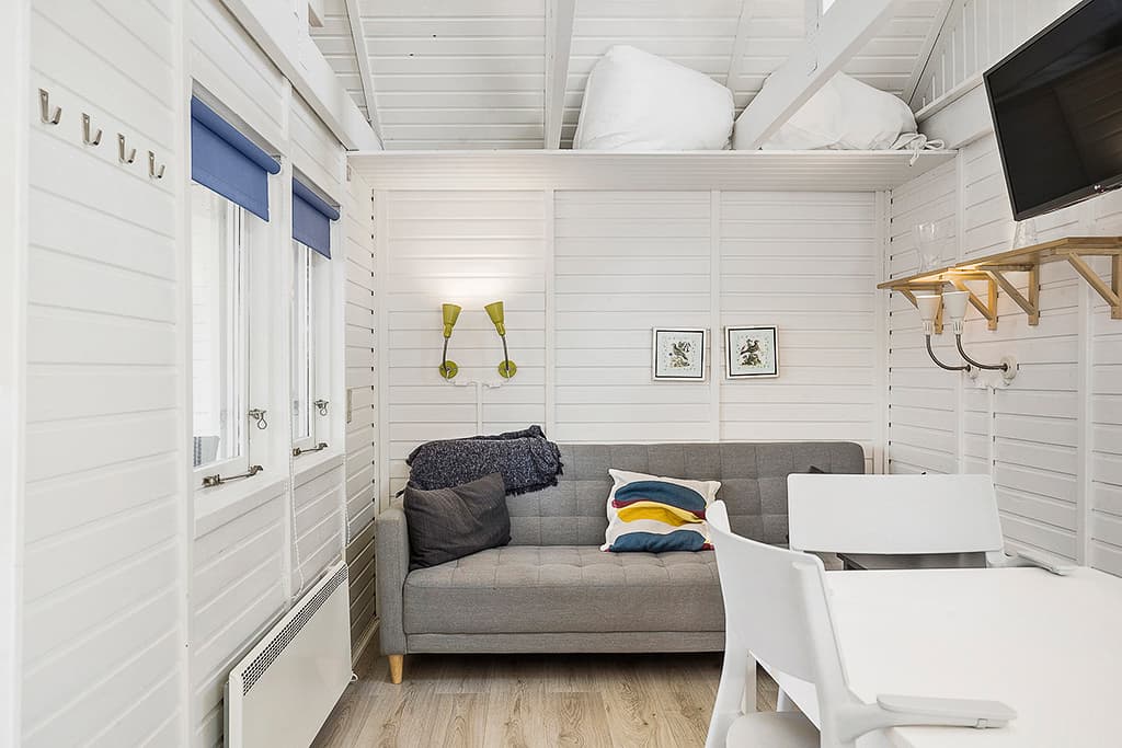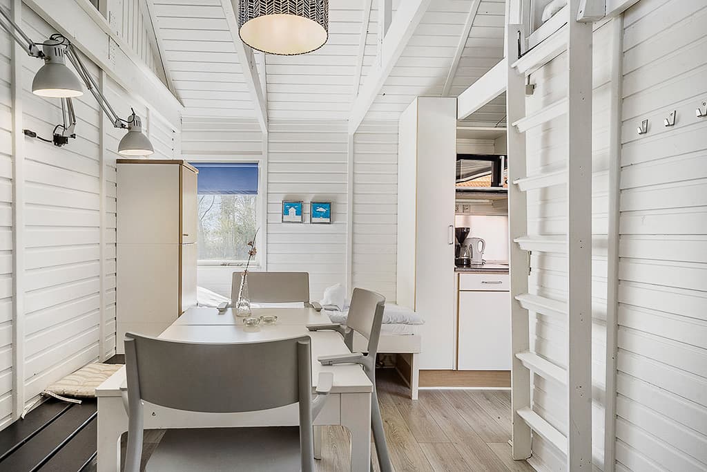 The cabins are designed for a maximum of 2 adults and 2 children. Lovely well-equipped cabin with a loft with room for 2 people, a cozy living room with lots of sofa space. But a living room that also functions as a bedroom, space for 3 people, dining space, nice kitchen niche with hob, microwave, fridge w/freezer, coffee machine, everything in service, hot & cold water. The cabins are non-smoking. You will find garden furniture and a barbecue on the lovely terrace. Light duvets and pillows are available in the cabin. There is no bath or toilet in the cabin, the nearest service building is used here. Cabin prices are incl. electricity, heat and water.