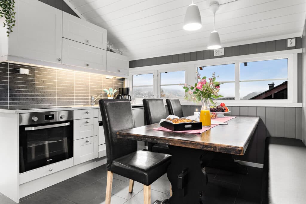 Our Hallingleilighet apartment provides pleasant and comfortable accommodation, with everything you need for a great camping holiday. This 34 m² apartment has beds for five people divided into two bedrooms with bunk beds, while the living room has a dining area, sofa and TV. The kitchen is fully equipped with a fridge, stove, oven, dishwasher and coffee maker. The apartment has its own bathroom with shower and toilet. The balcony door leads to a cosy patio from where you can enjoy views of Gol’s beautiful scenery – a true dream for anyone who loves mountain life!
