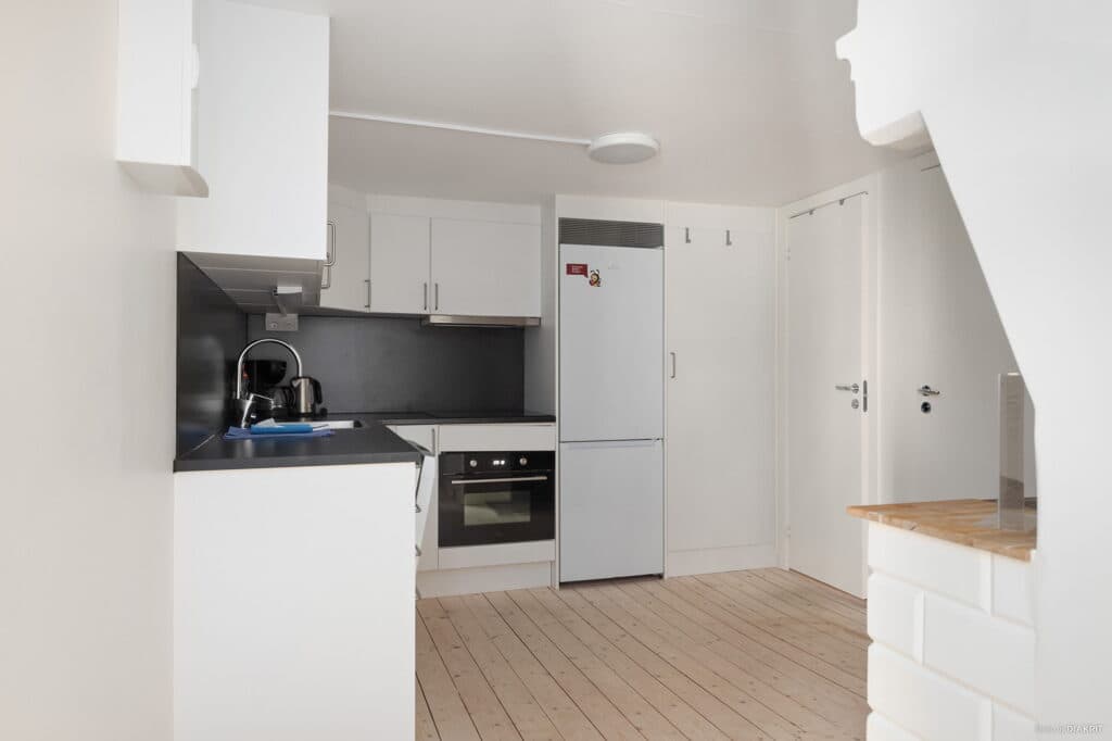 Welcome to Hamnvillan, a brand new accommodation in Gränna! Here you will stay in 45 pleasant square meters in bright and fresh environments. The cabin accommodates up to 4 people. The beds are distributed in one bedroom with a double bed ans one bedroom with a bunk bed. Here you will find everything you might need during your holiday. Outside, there is also a nice terrace where you can enjoy your morning coffee with a view of the beautiful Vättern. The kitchen is equipped with crockery and other kitchen equipment such as a dishwasher, stove, coffee maker, fridge and freezer, and a combined oven/microwave.