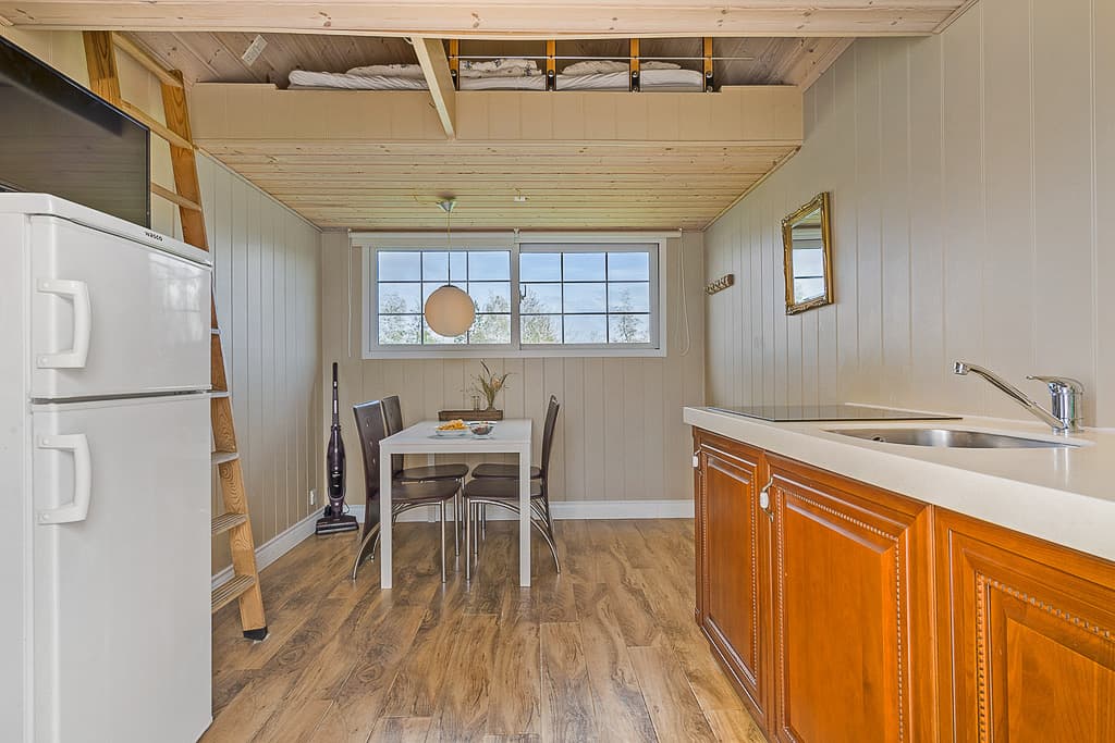 Jørgensø Cabin is a charming little cabin of 12 square meters with space for 4 people.