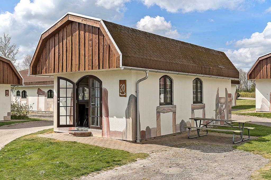 The Hasmark Cabin has space for the whole family! The cabin is charmingly decorated and features a private outdoor seating area just outside the door. It accommodates up to 6 people, with two bedrooms and a loft with two mattresses. The cabin also includes a kitchen with a dishwasher, stove, and large refrigerator, a living room, as well as a private bathroom and toilet. At the Hasmark Cabin, you’ll stay close to everything you need on the campsite.