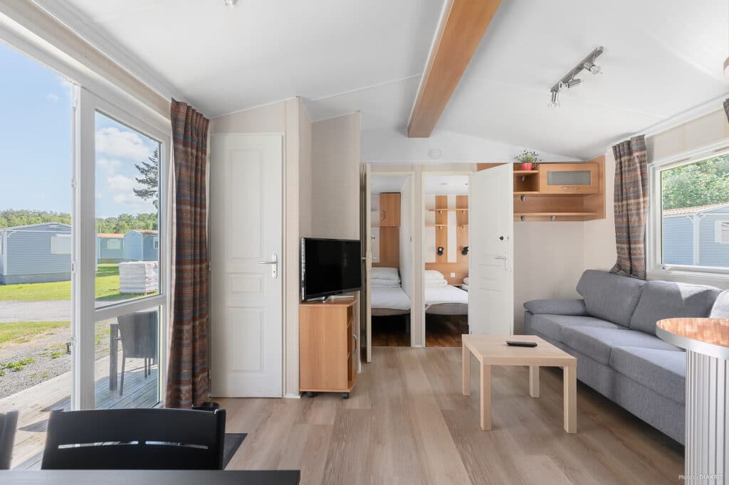 Villavagn Sandvik is a stylish, spacious cabin with three rooms and a kitchen. The kitchen is well equipped with spacious cupboards, a hob, oven, fridge and also a freezer. Terrific living room with TV, comfortable sofa, coffee table and spacious cupboards. The open plan living room shares space with a dining area with a dining table and four chairs. One bedroom with a double bed and spacious wardrobe, and two smaller bedrooms. The cabins each have a bathroom with a shower, washbasin and a separate toilet. There is also electric heating.
