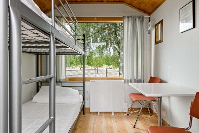 Simple and small, but nice accomodation is here presented. Each cabin is 5 m² and is equipped with 2 beds per cabin (bunk beds), a table and two chairs. Kitchen, showers and toilets is found in the service building about 100 m from the cabins.