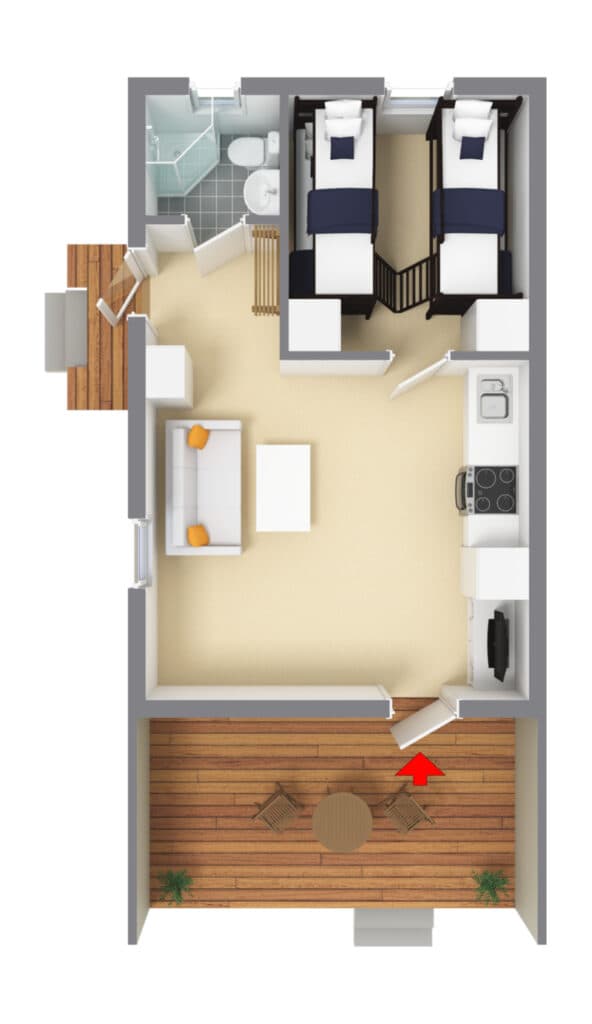 Here is the destination’s largest cabin of 30 sqm. Bring family or friends and stay in a cozy and spacious cabin with proximity to soothing nature and wonderful surroundings in Mellstaparken. The cabin is suitable for families up to 6 people, where you can enjoy good sleep in two bunk beds or in the sofa bed with space for two people. The cabin also has a bathroom with shower and toilet and a fully equipped kitchen where you can easily prepare the evening dinner. The kitchen has a stove, microwave, fridge, freezer and coffee maker. In the heart of the cottage, the living room there is also a TV for cozy evenings. For those who want to enjoy morning coffee or late summer dinners outdoors, there is a terrace just outside the cottage. Perfect for you who want to enjoy a little extra! Our four-legged friends are also welcome here if desired. Mellstastugan is therefore a very good choice for family, friends or you who prefer a little extra space and comfort!