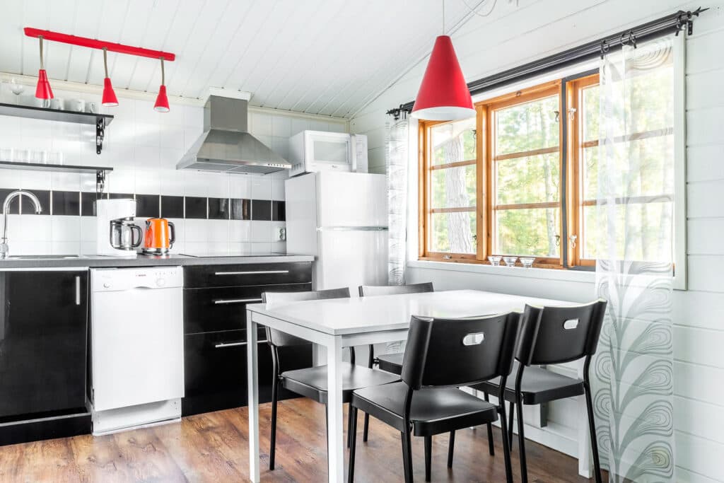 Outside the cabin there is a terrace which is equipped with table and four chairs. Perfect for you who want to enjoy good meals or morning coffee outdoors. Here you also live both close to the beach and playground.
