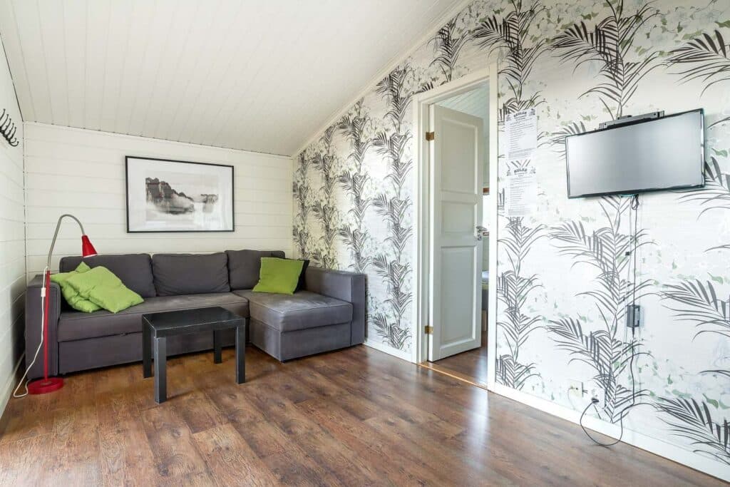A bright and pleasant cabin with beautiful views of Lake Vänern. The cabin has a total of four beds, two of which are in a separate bedroom with a doublebed (160 cm) and two beds in a sofa bed in the living room. There is a kitchen with stove, refrigerator, microwave, coffee maker and kettle. Shower and toilet are also in the cabin. Perfect accommodation for you who want to live fresh and comfortable in a lovely and soothing environment. Möruddenstuga are the cabins with numbers 5 and 6 on the map.