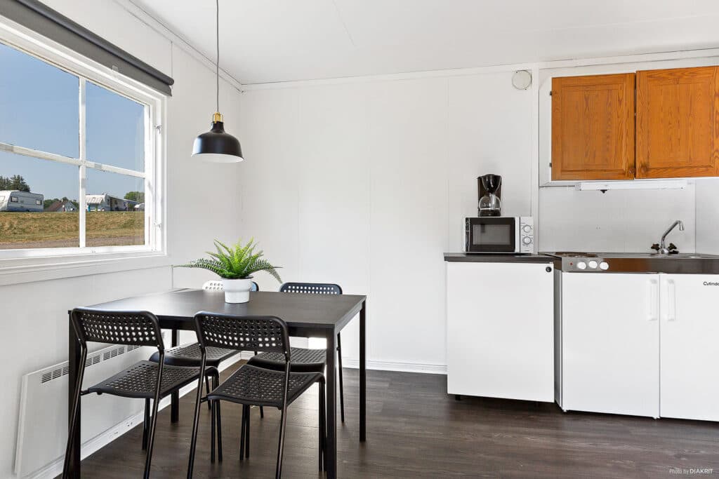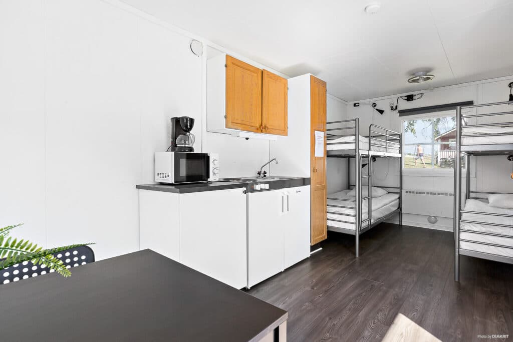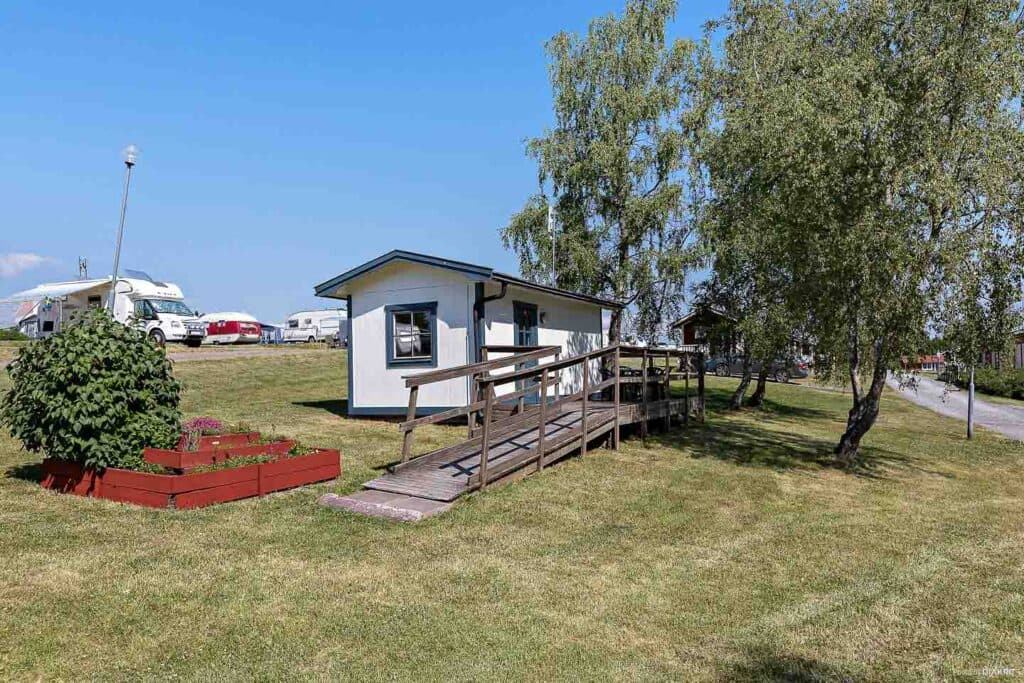 Welcome to a simple but cozy cabin of 16 square meters with ramp up to the door. There are two bunk beds with space for a total of four people. The cabin is also equipped with a triple kitchen with fridge, freezer, microwave and coffee maker. If you want access to facilities such as toilet and shower, you will find in nearby service houses. Outside the door of the cabin there is a nice terrace where you can enjoy your morning coffee or good holiday meals. By the way, do you want to take your four-legged friend on the trip? No problem, this cabin are skin-friendly.