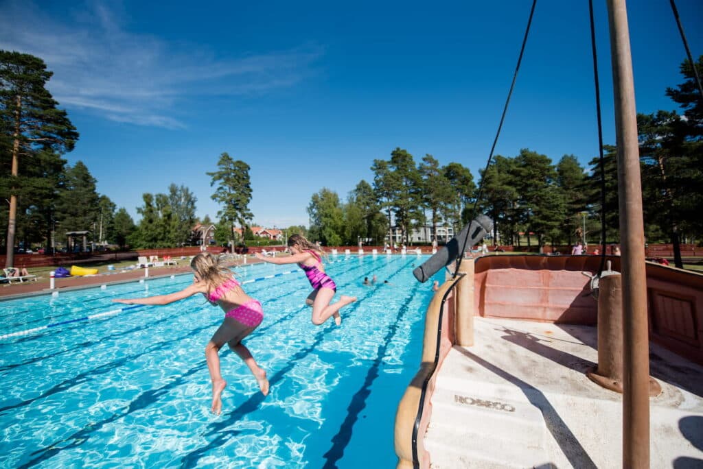 Orsa lives up to its epithet as the riviera of Dalarna. Its location on the shallow and kilometer-long shore of Lake Orsa, with the blue mountains as a backdrop, creates an exceptionally beautiful view. The campsite in Orsa is a favorite of many families with children! A real premium destination that offers everything from colorful sunsets to fast-paced water games. In addition to the kilometer-long beach, there is a heated pool area with a pirate ship, a children’s pool and a water slide. The campsite also has adventure golf, an ice cream bar and a restaurant. During the summer weeks 27 to 32, you can take part in our record-breaking activity program with, among other things, a children’s club, training and entertainment.