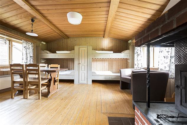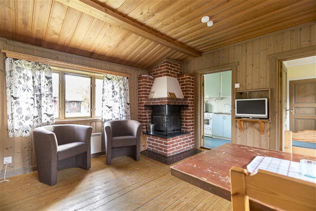 The Orsastuga Cabin sleeps 4 people and has a scenic location with the Lillån stream flowing behind it. Apart from cabin 23, which is 21 sqm, these cabins are 32 sqm in size. All cabins sleep the same number of people but have different layouts. All cabins have one room and a kitchenette. With two bunk beds in the living room, the cabin sleeps a total of 4. Duvets and pillows are supplied for all beds in the cabin. The living room has a dining area, wood burner, and TV. The bathroom has toilet and shower. The kitchenette is equipped with basic kitchenware, refrigerator, freezer, oven, percolator, and microwave. Cabins 21, 28, and 33 have no freezer or freezer box, while cabin 23 has no oven. If you wish to see the floor plans of the cabins, please select a specific cabin when booking.