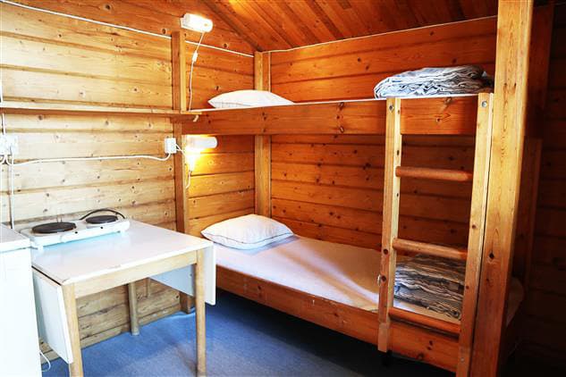 Granmorhytt is 9 sq m in size and sleeps four people. Each cabin has two bunk beds, with duvets and pillows for all beds. The cabin has a hot plate, a fridge and a table and chairs. In the cabins, you will find dinnerware for 4 people and kitchen utensils for simpler cooking.