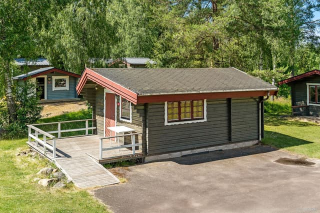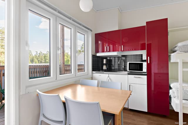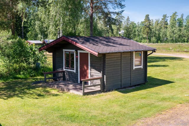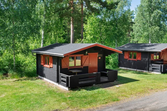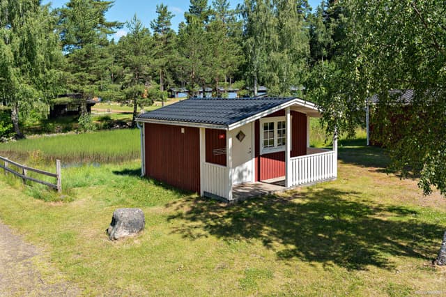 Lundbytorp is located in a quieter area of the campsite, a little further from the reception and entrance. It is a small cabin of 12 sqm with four beds.
