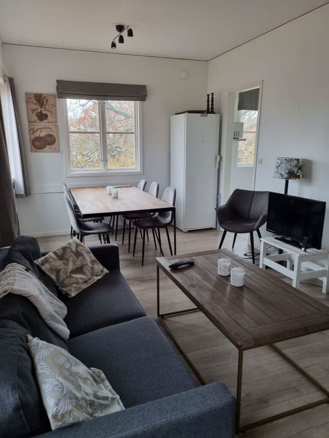 Vår storstuga med plats för hela tio personer. I stugan finns badrum med dusch och wc. Tre sovrum, ett trevligt allrum med tv, samt ett fullt utrustat kök.