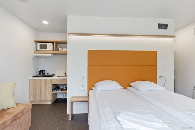 At First Camp Skönstavik-Karlskrona there are two holiday villages, with a total of over 30 cabins in different sizes. Choose between modern and fresh self-catering cabins or simple camping cabins. All cabins are located near the sea with excellent swimming opportunities. The destination is equipped with toilets, showers, lockers, washing machines, tumble dryers, oven, microwave and dishwasher. There is also a small shop, a café and a restaurant with good food and drinks. Take your dog with you on holiday – here you can enjoy long walks along the sea and stop for a swim and play at the dog bathing place.