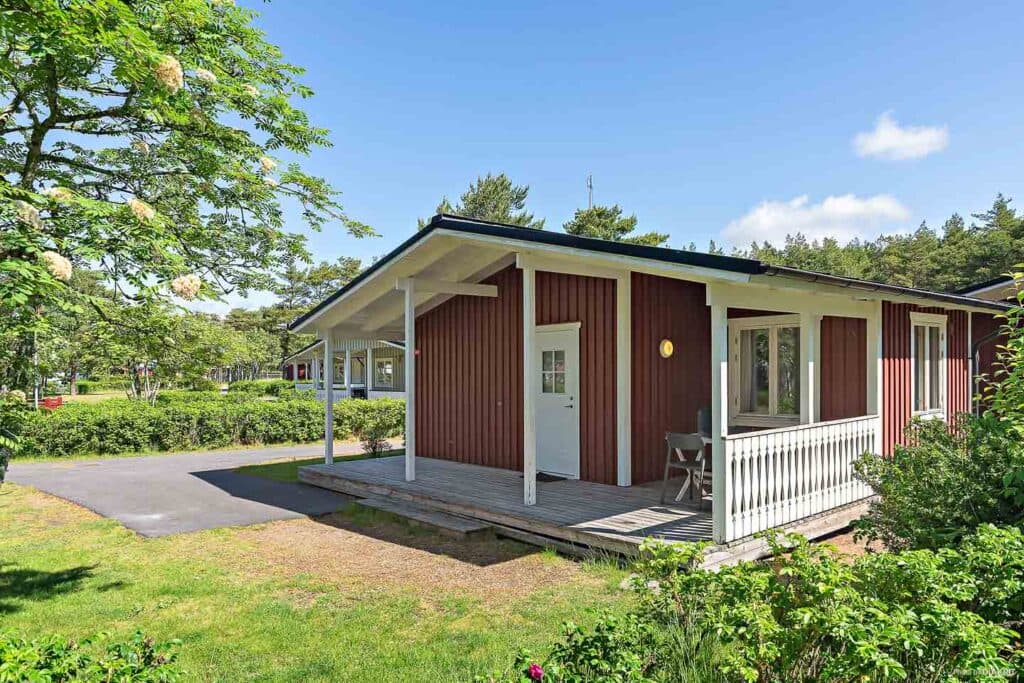 This is the perfect accommodation for those who want plenty of space and appreciate having all the comforts of the campsite within arm’s reach. Enjoy relaxing days on the large, furnished, and covered terrace in this family-friendly cabin village – and just a short walk from the cabin, you’ll find Sweden’s best sandy beach. The cabin features a spacious living room combined with a kitchen. The kitchen offers good storage space and is equipped with a stovetop, oven, microwave, dishwasher, and fridge/freezer. There is also a TV, a sofa bed, and a small dining area. The bedroom has two beds, and duvets and pillows are provided for all beds in the cabin. The bathroom includes both a shower and a toilet. Parking is available right next to the cabin.